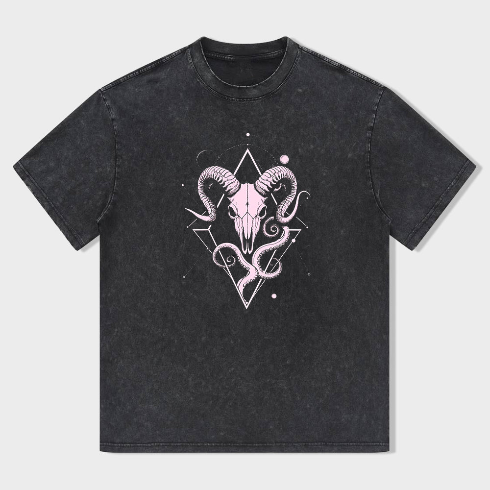 Baphomet Skull Graphic Tee Men's Cotton Short Sleeve T-Shirt