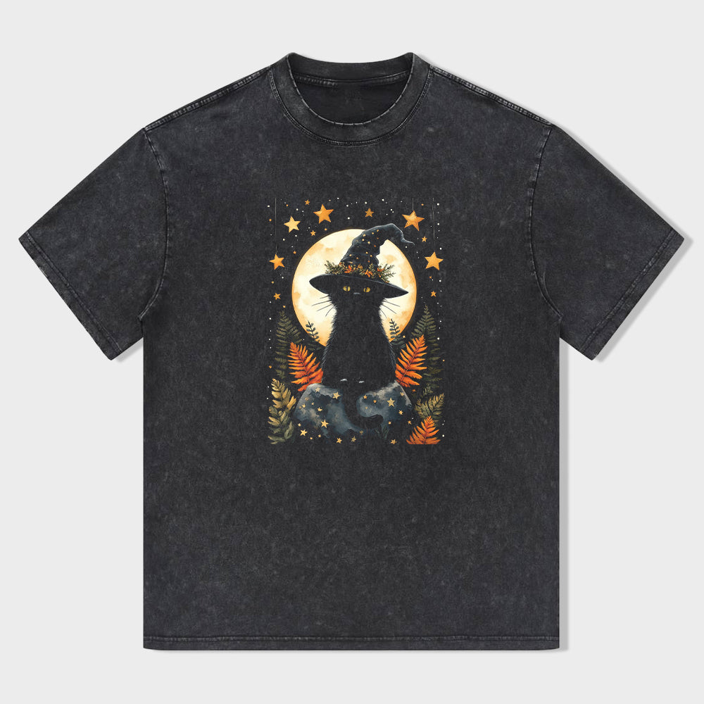 Black Cat Moon Night Sky Graphic T-Shirt