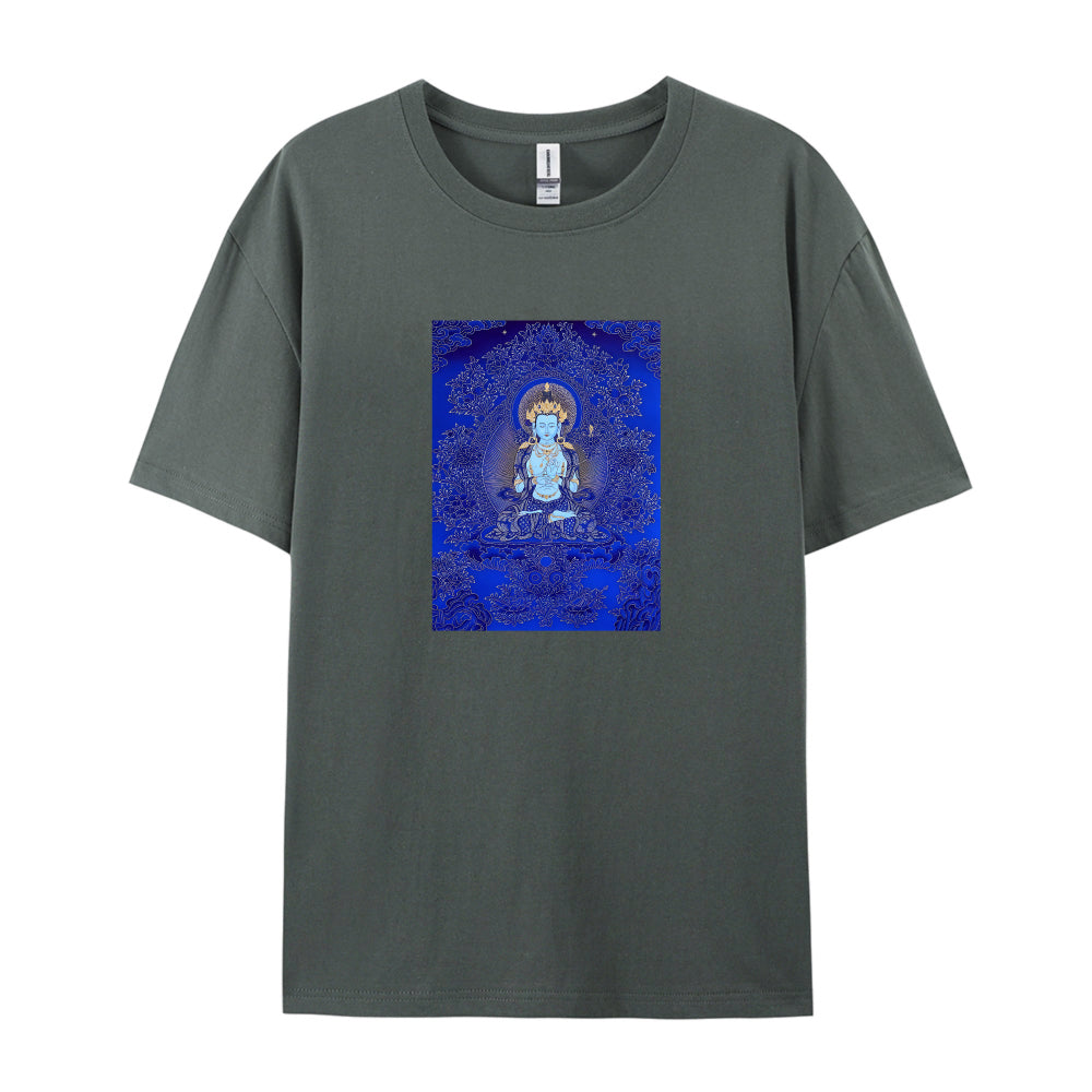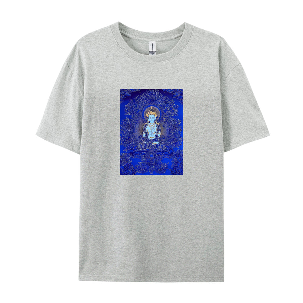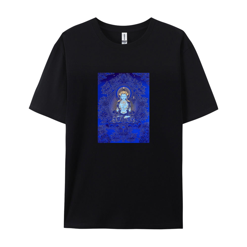 Buddha Art Print T-Shirt for Men Women - Blue Meditation Design Graphic Tee - Comfortable Casual Cotton Top - Spiritual Yoga Clothing - Unique Gift Idea