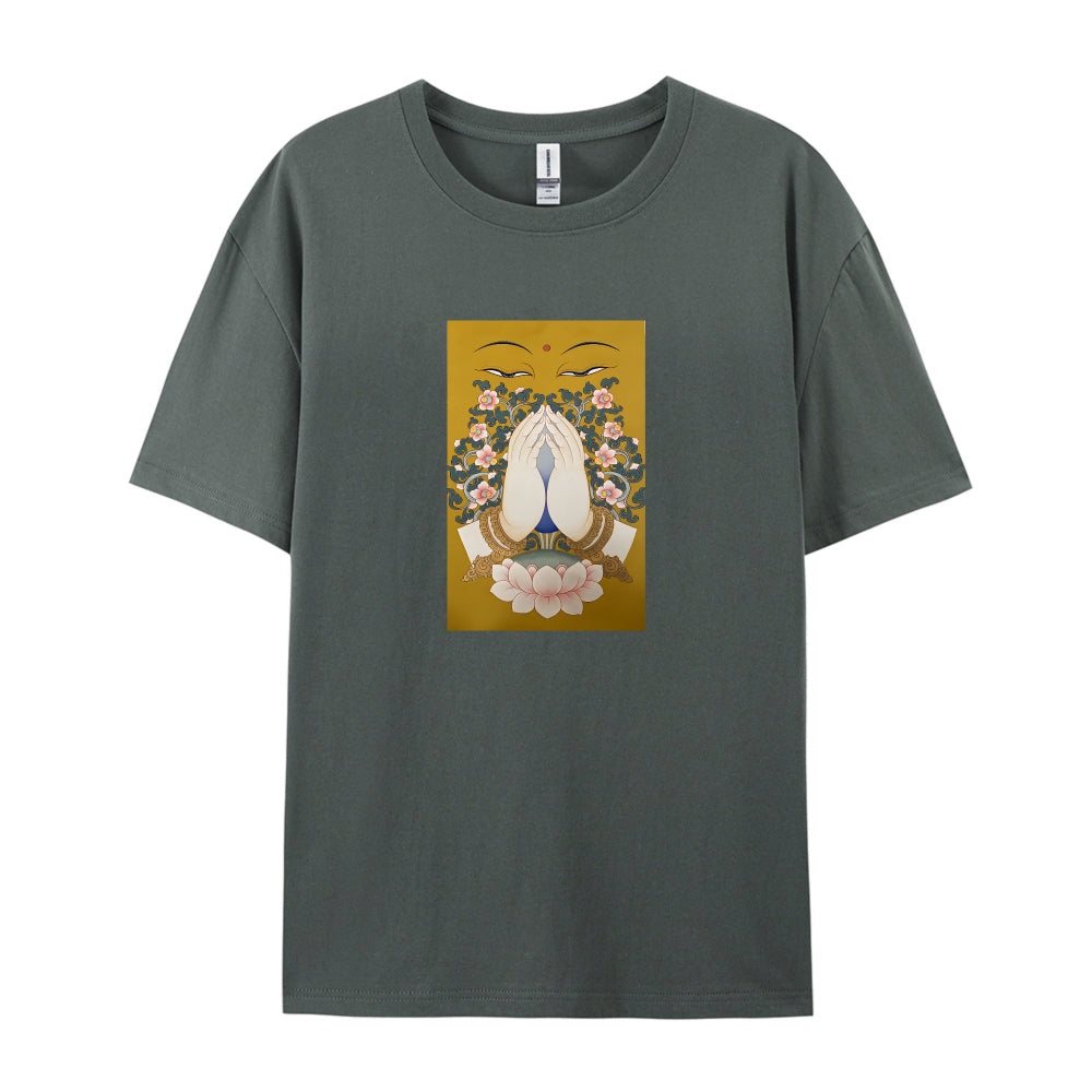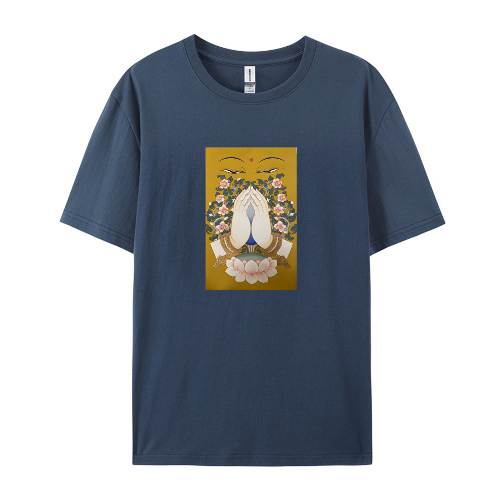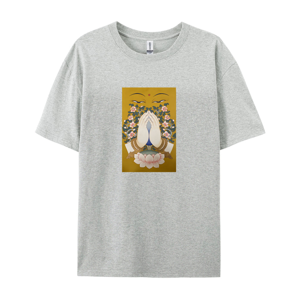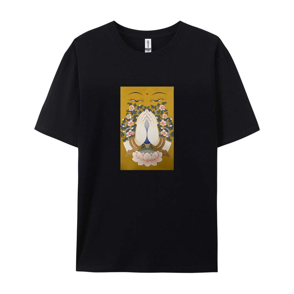 Buddha Face Lotus Flower Design Graphic T-Shirt for Women Men Unisex Casual Cotton Tee Top