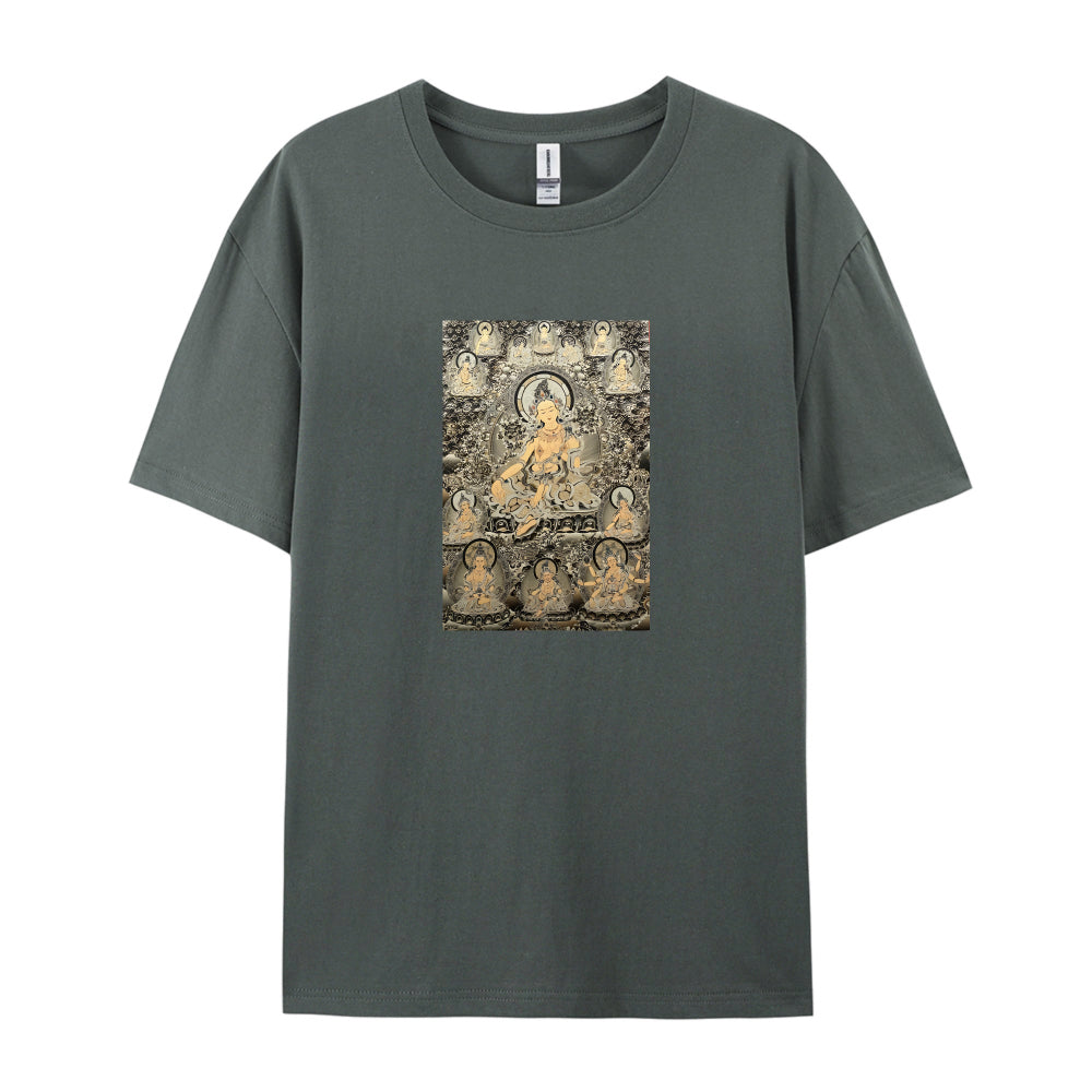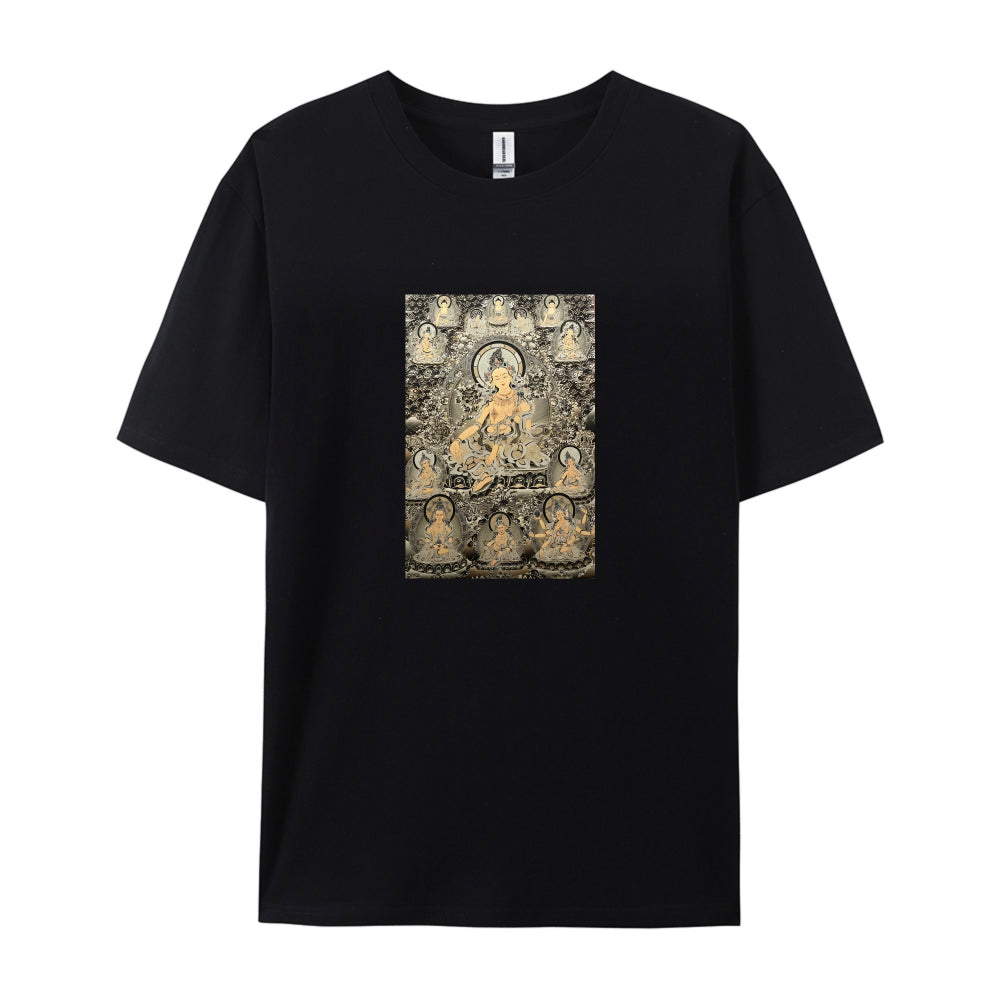 Buddhist Art T-Shirt Golden Buddha Design Spiritual Meditation Clothing Unique Religious Graphic Tee Men Women Unisex Fit Comfortable Casual Wear Traditional Zen Buddhism Apparel