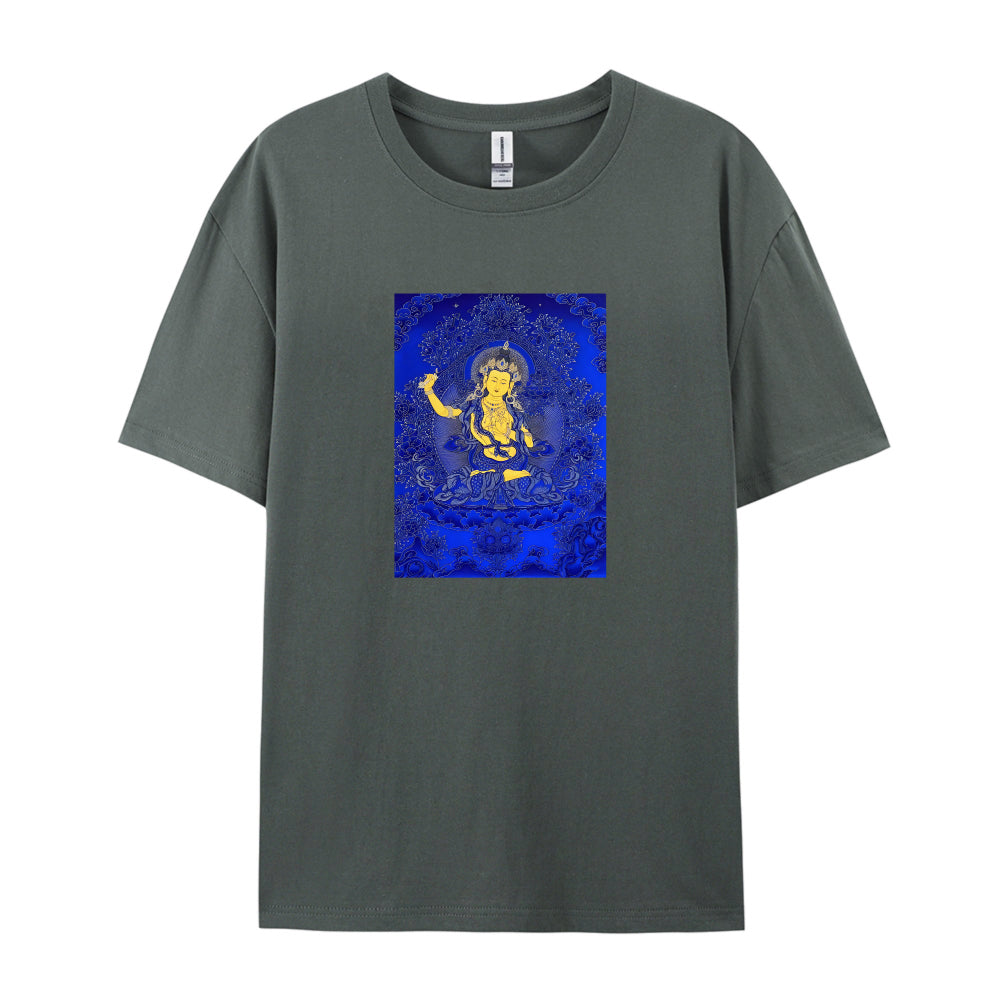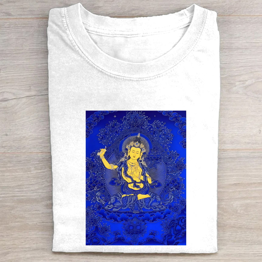 Buddhist Deity Art Print White T-Shirt for Men Women Casual Wear Spiritual Clothing Meditation Apparel Unique Design Graphic Tee