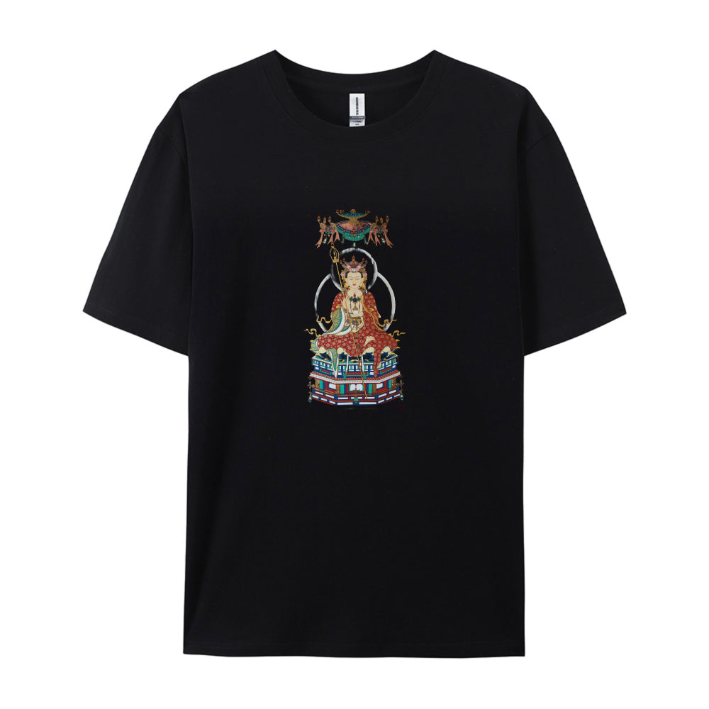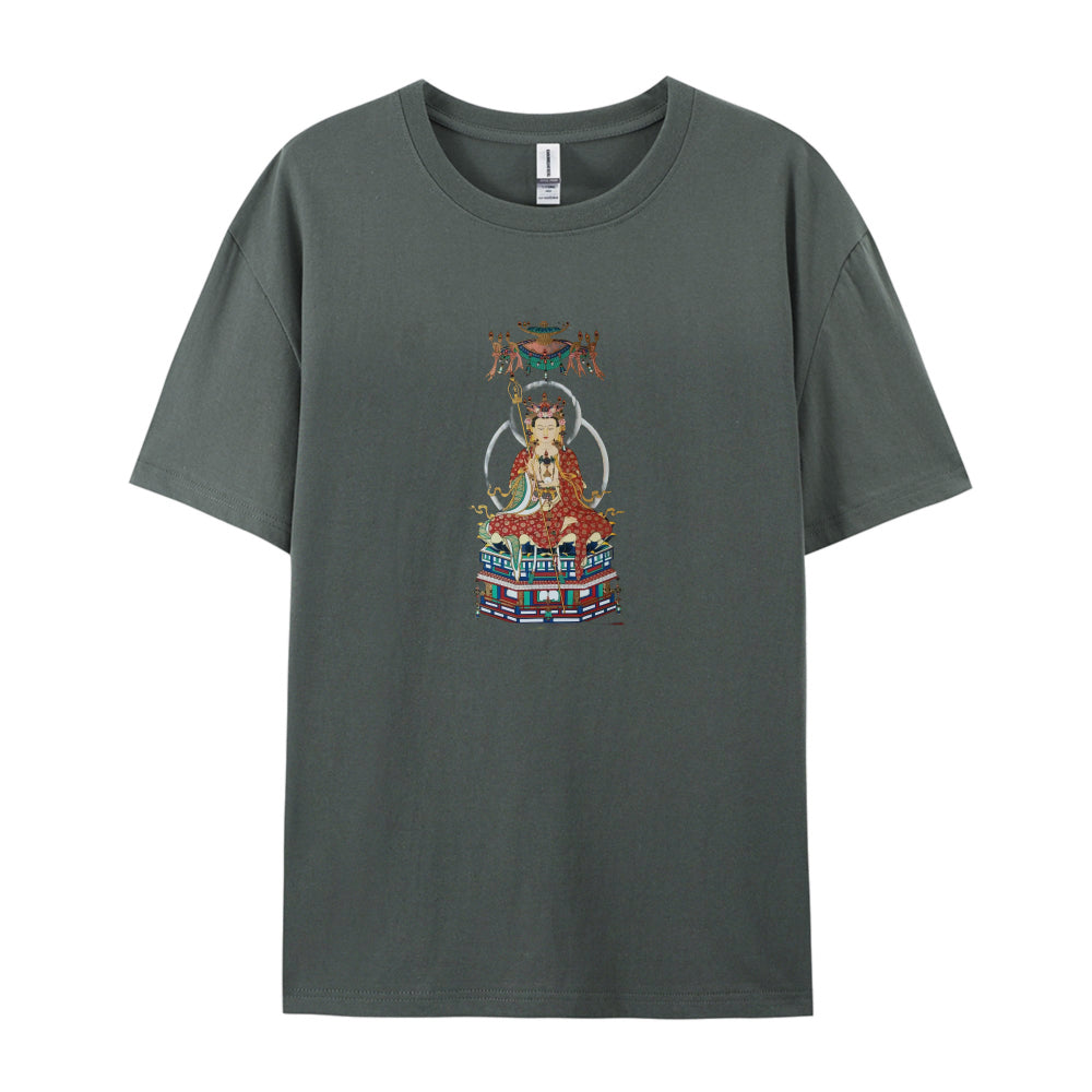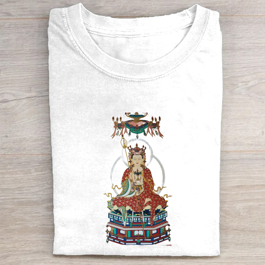 Buddhist Deity Artwork Graphic T-Shirt for Men Women Spiritual Meditation Clothing Comfortable Casual Tee Unique Design Top White Cotton Shirt