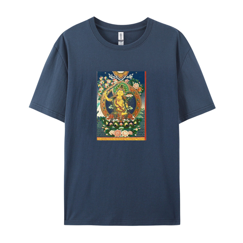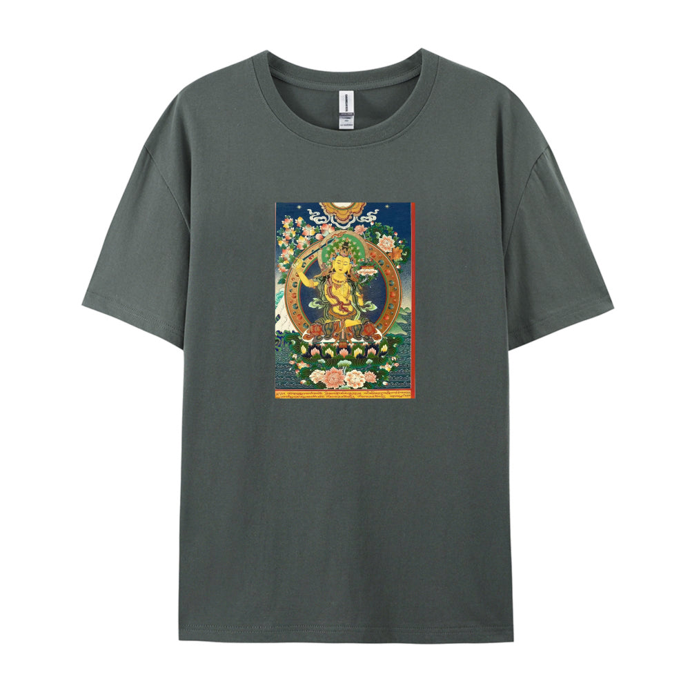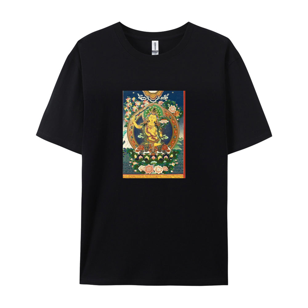 Buddhist Thangka Art T-Shirt White Cotton Tee with Traditional Tibetan Design Spiritual Meditation Clothing for Men and Women Comfortable Fit for Daily Wear Unique Cultural Gift Idea