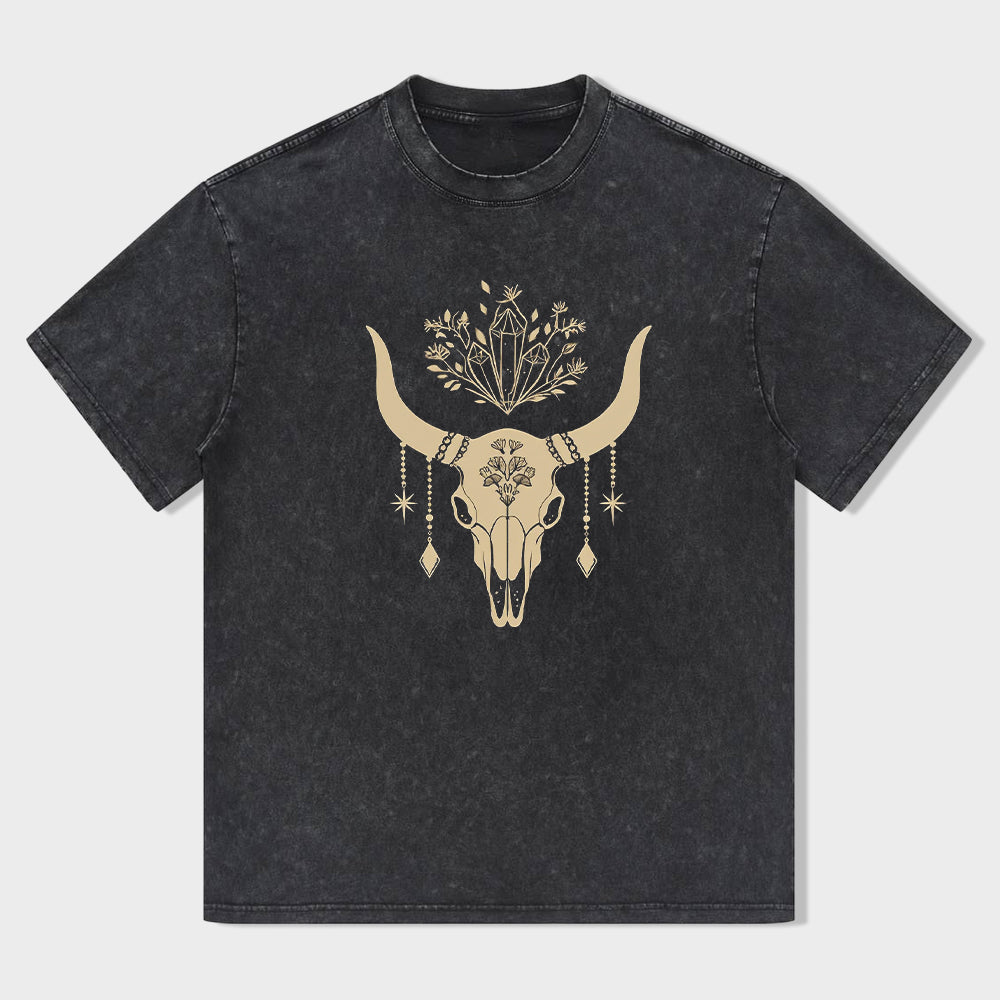 Bull Skull with Floral Design Men's Graphic T-Shirt