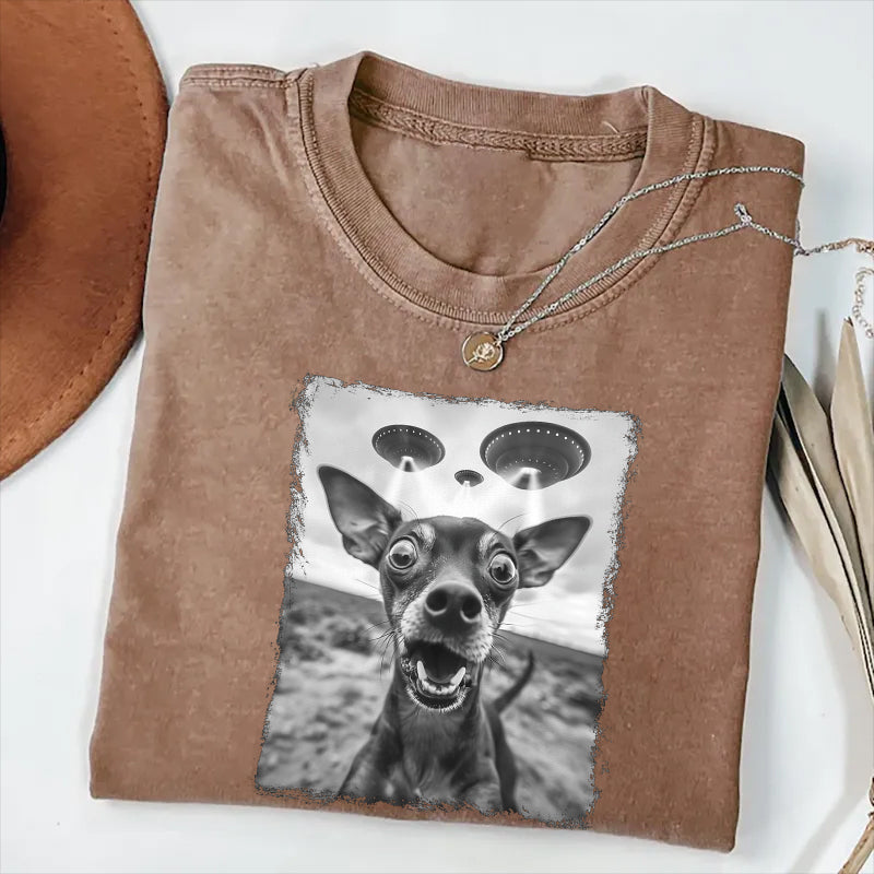 Miniature Pinscher Dog UFO Alien Extraterrestrial Selfie T-Shirt