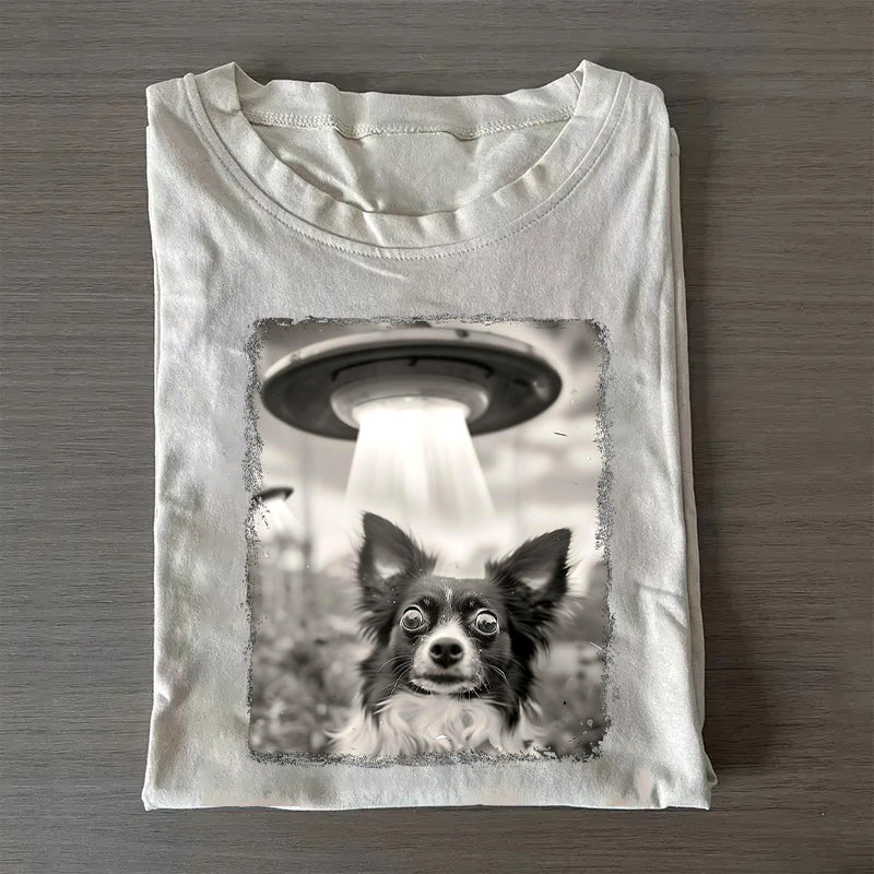 Papillon Dog UFO Alien Extraterrestrial Selfie T-Shirt