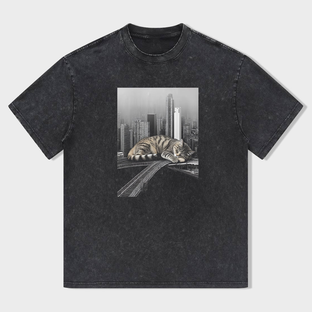 Cityscape Cat Graphic T-Shirt