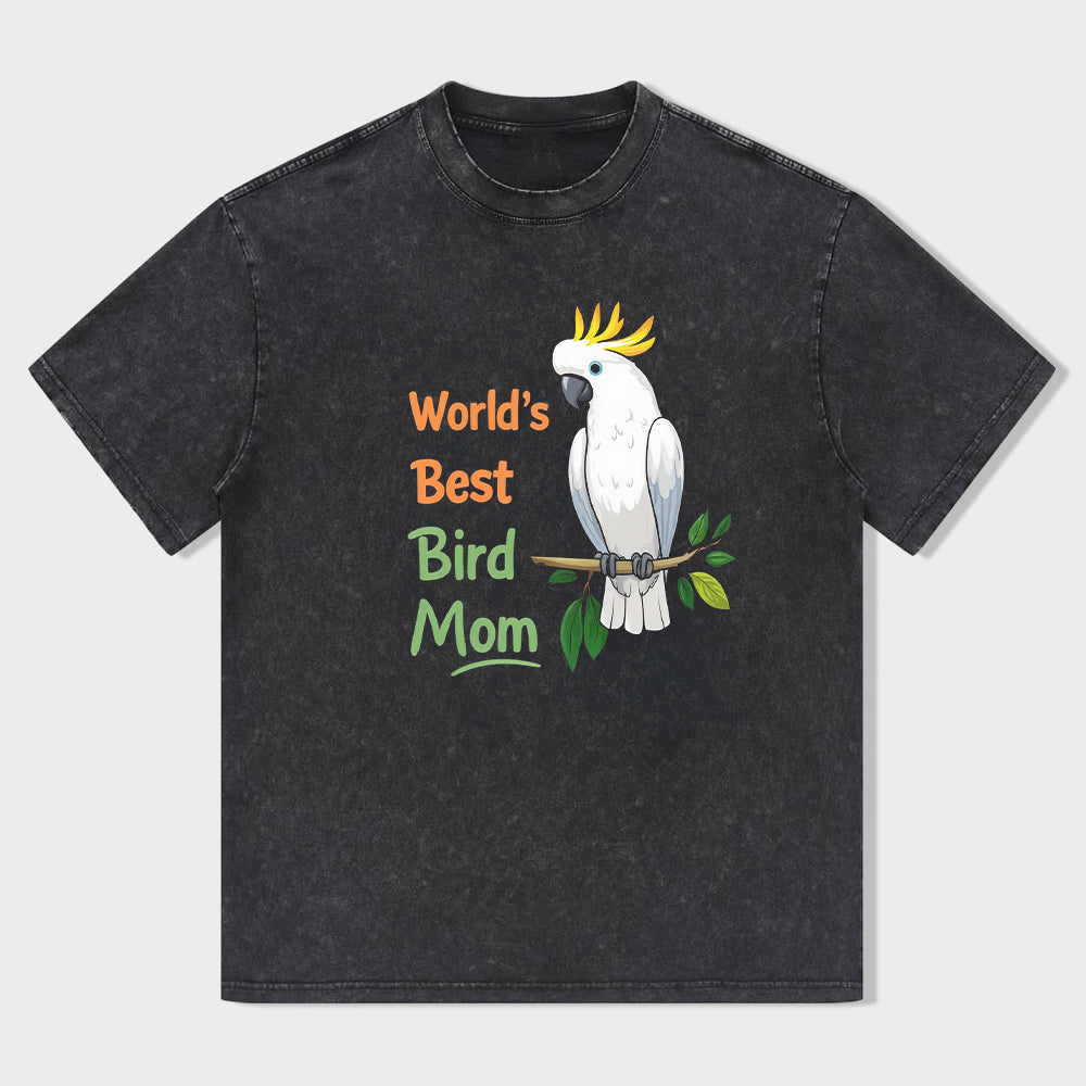 Crew Neck Black T-Shirt with World's Best Bird Mom Cockatoo Print for Pet Lovers