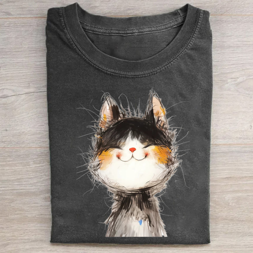 Cute Cat Face Print Graphic T-Shirt