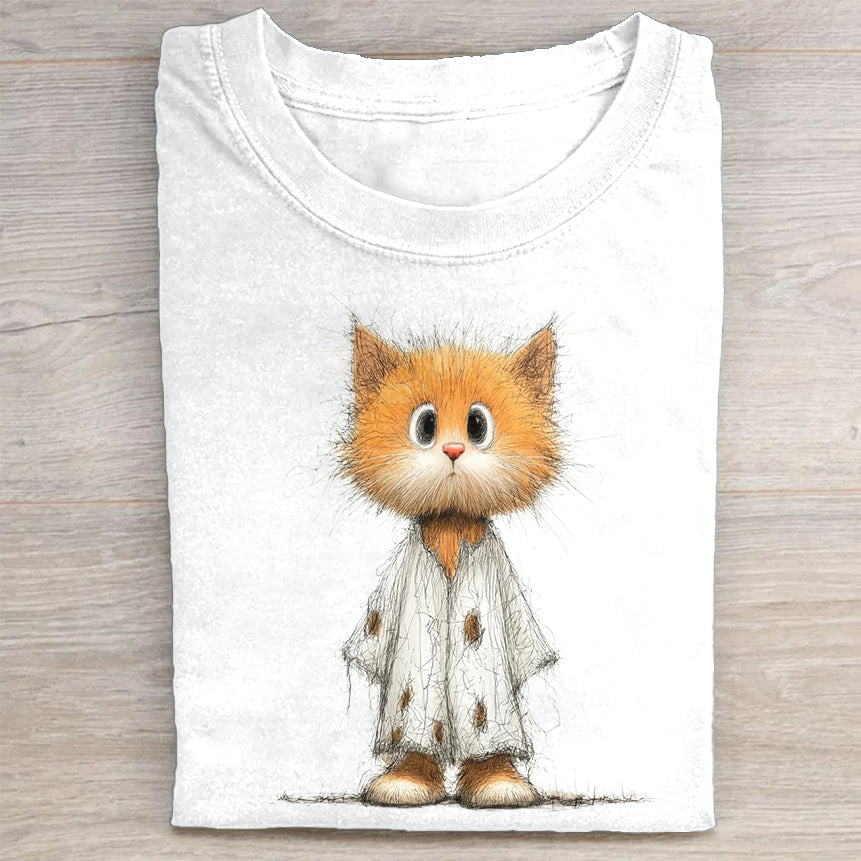 Cute Kitten in Sweater Graphic Print Casual T-Shirt