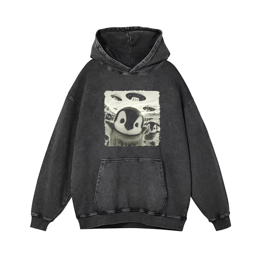 Emperor penguin pups Taking Selfie with UFOs Funny T-Shirt