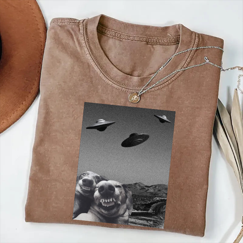 Funny selfie Dogs With Alien UFO Funny Dog With his Friend T-Shirt