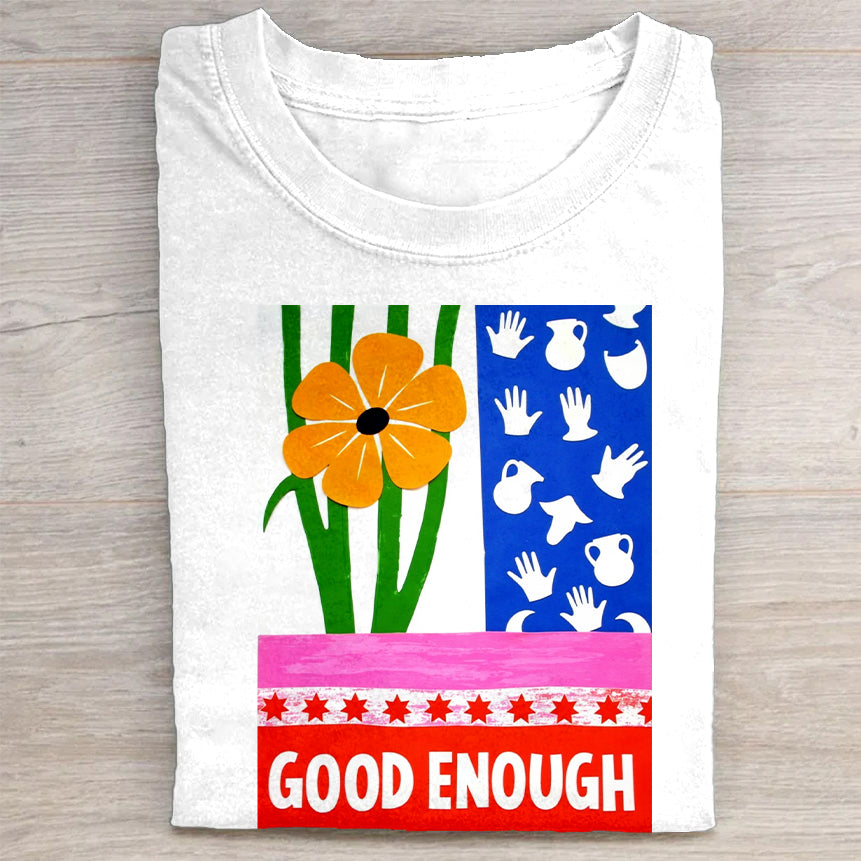 Good Enough Graphic T-Shirt with Flower and Hands Design - Unisex T-Shirt