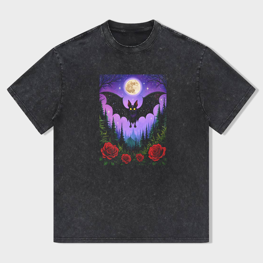 Halloween Bat Moon Night Forest Roses Graphic T-Shirt