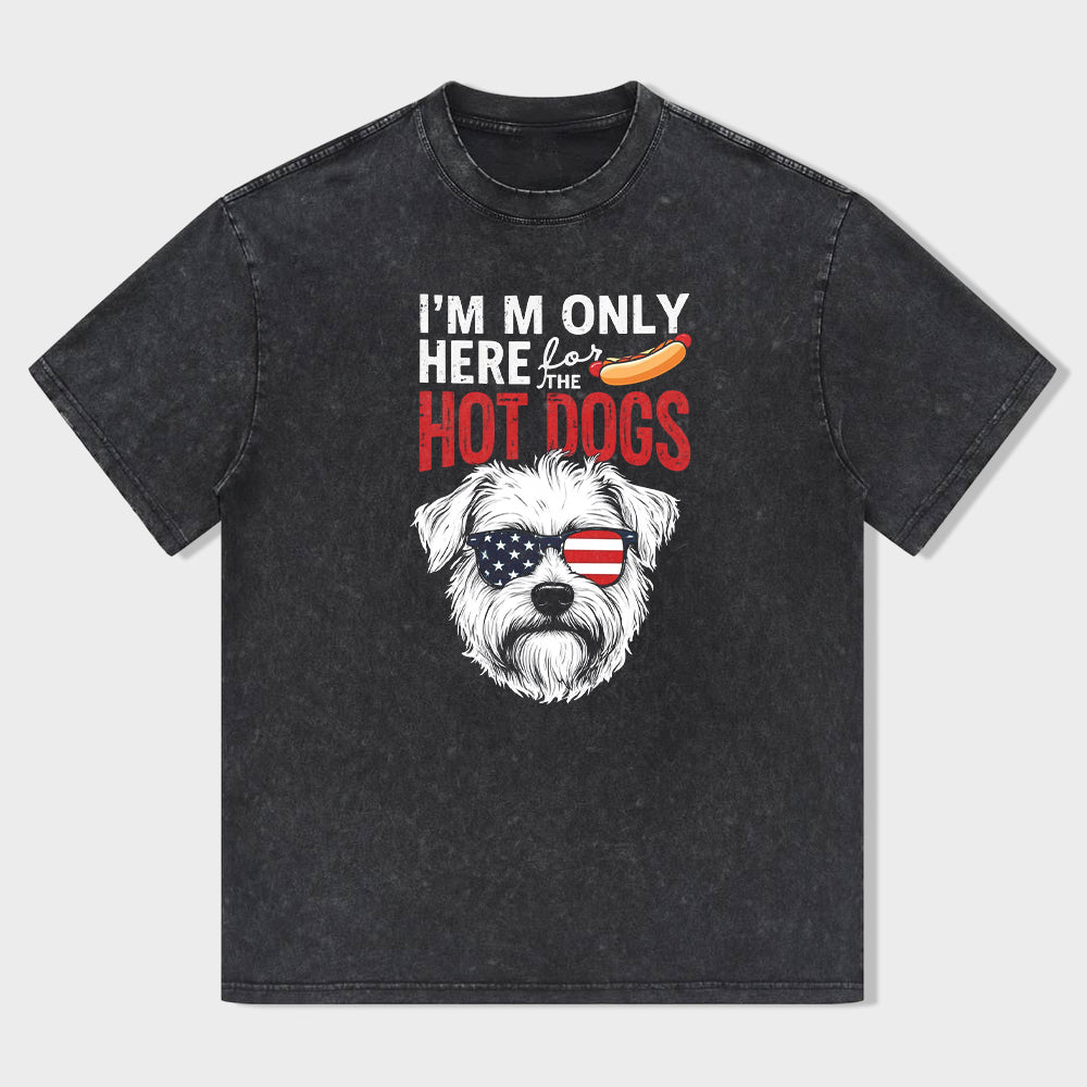I'm Only Here for the Hot Dogs Funny Patriotic Dog T-Shirt