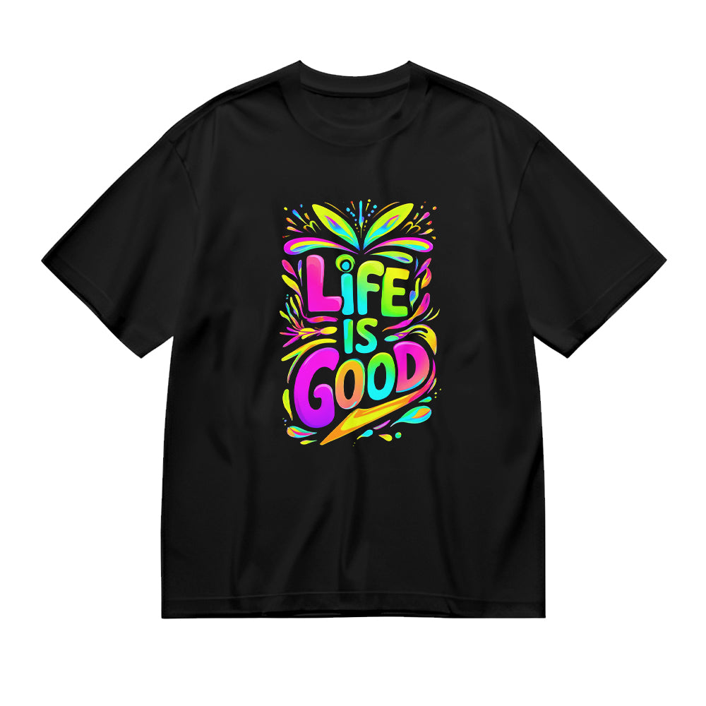 Life is Good Colorful Graphic Design Black T-Shirt