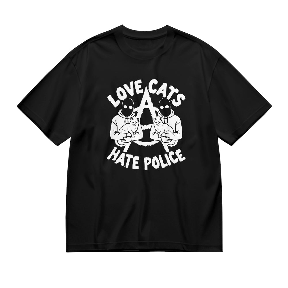Love Cats Hate Police Anarchy Symbol Graphic T-Shirt
