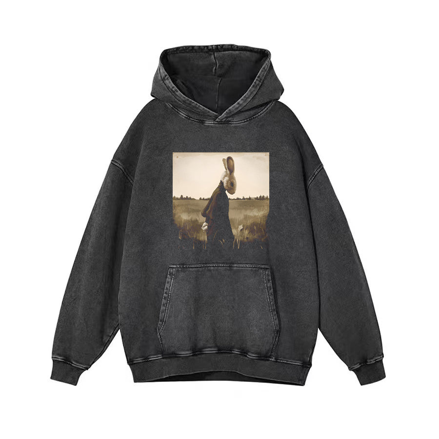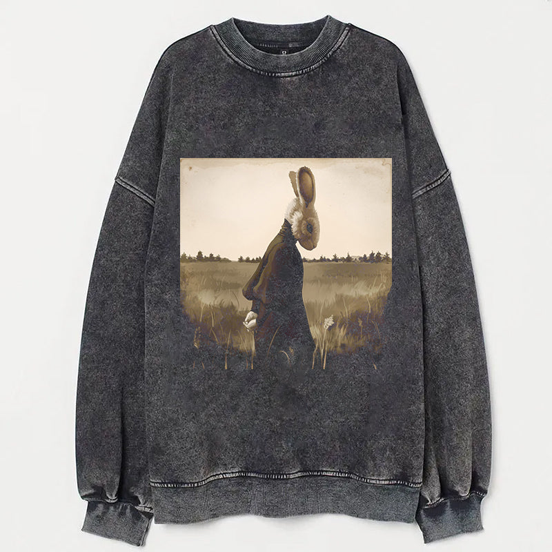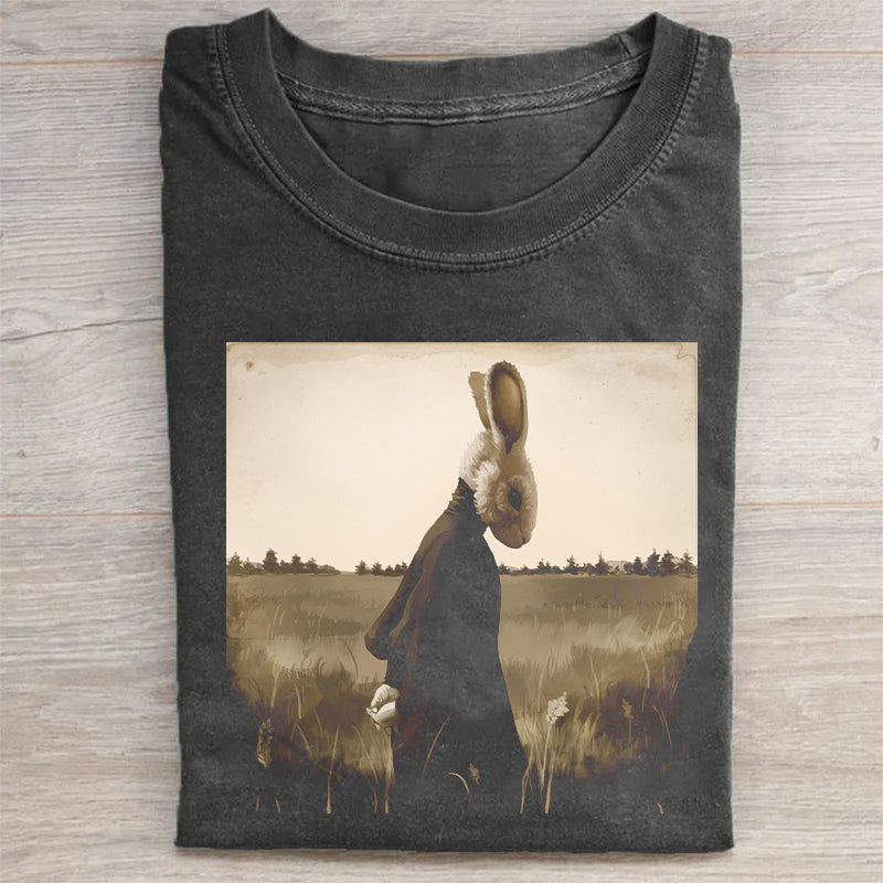 Rabbit Art Print Round Neck Short Sleeve T-Shirt