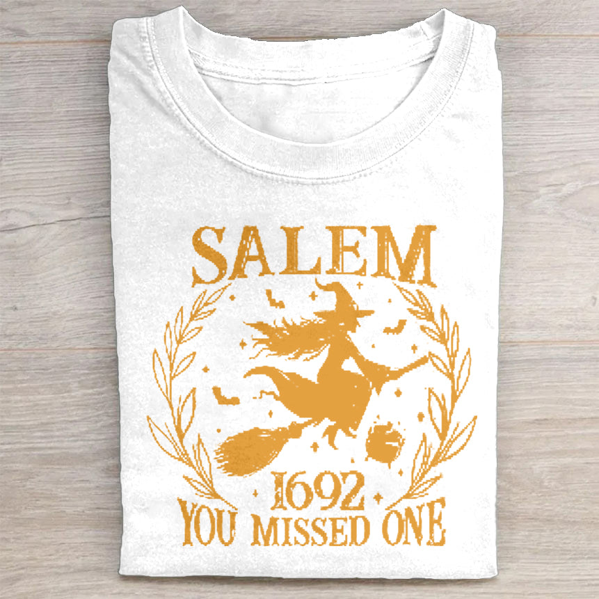Salem 1692 You Missed One Witch Flying Halloween Graphic T-Shirt