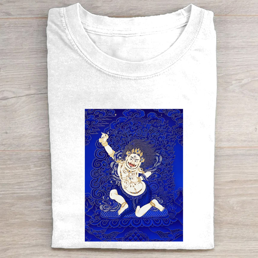 Tibetan Thangka Art White T-Shirt for Men Women - Traditional Buddhist Deity Design - Comfortable Casual Tee - Unique Cultural Graphic Top - Size S-XXL