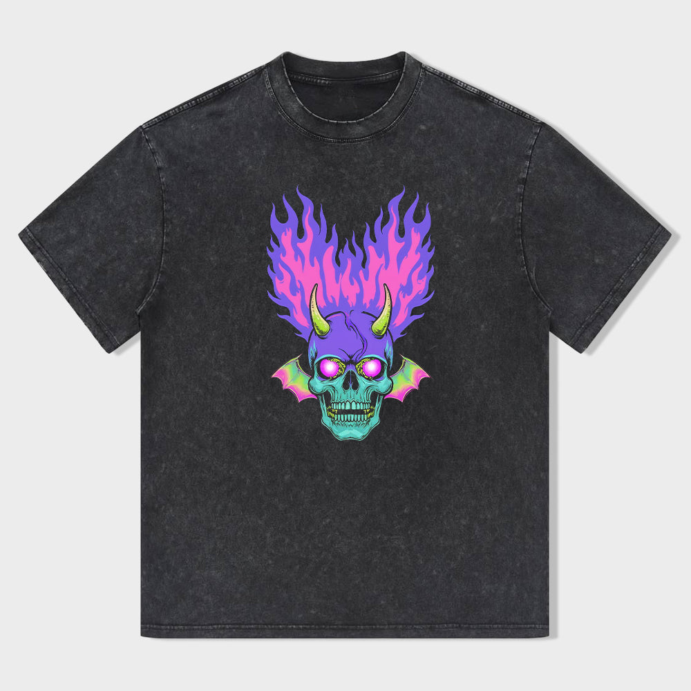 Unisex Crewneck Black T-Shirt with Purple Flame Skull Graphic for Casual Wear