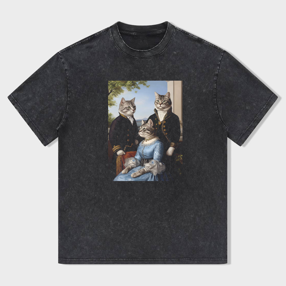Vintage Black T-Shirt with Cat Family Portrait Art Print - Unisex T-Shirt