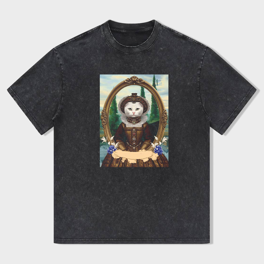 Vintage Black T-Shirt with Cat Portrait Art Print