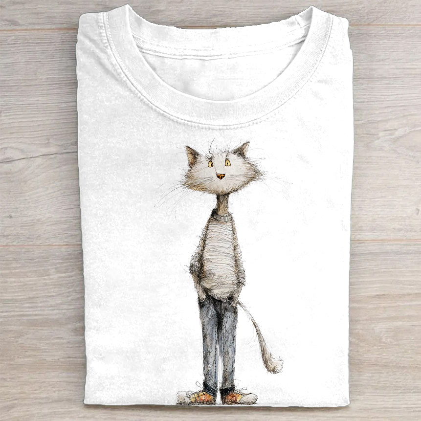 Whimsical Cat Art Print Graphic T-Shirt