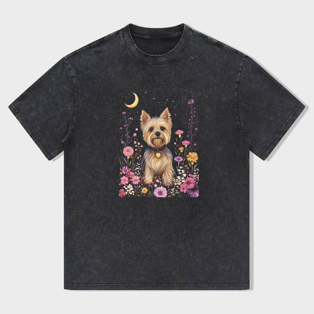 Yorkshire Terrier Dog Floral Garden Print Men's Casual T-Shirt